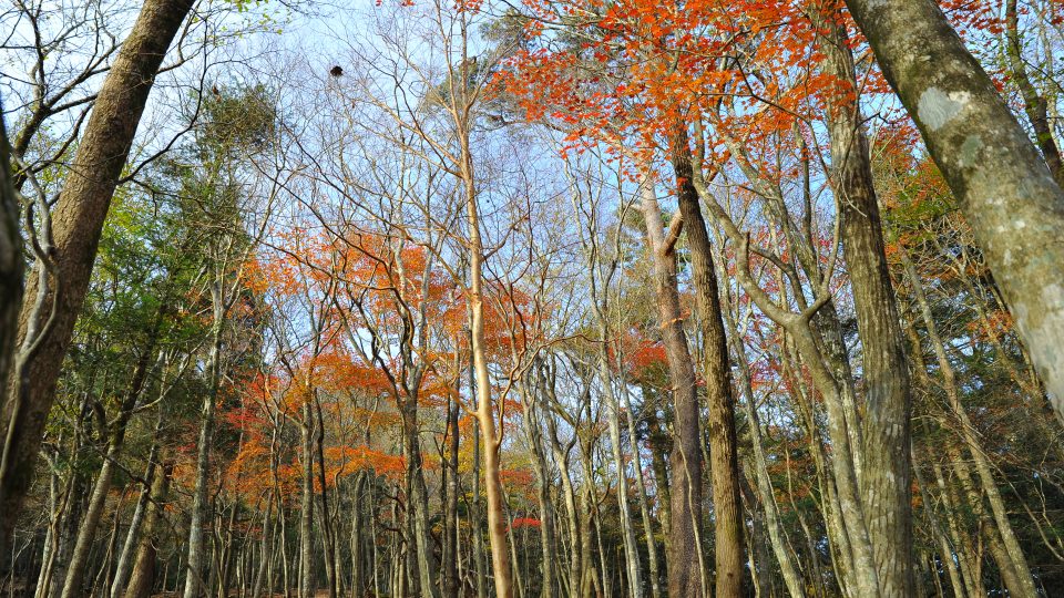 樫葉原生林にはツガ、ゴヨウマツ、コウヤマキ、イヌガヤ、ミヅナラ、ブナを初め120種も生い茂り、中には500年を経過した木々もあります。シダ植物や、ミツバツツジ類、シカ、イノシシ、サル、アナグマなどの動物、クマタカ、コガラなどの鳥類、オオミズアオなどの昆虫が生息する貴重な自然林です。
